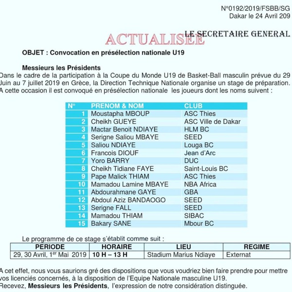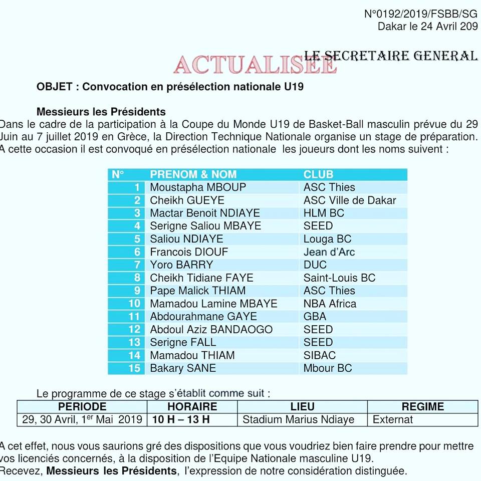 Coupe du monde U19 : La liste des présélectionnés
