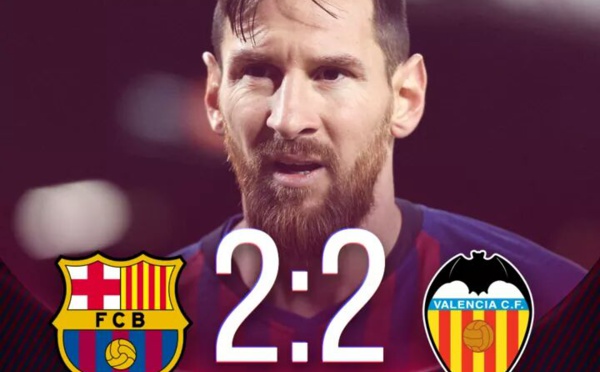 Lionel Messi a évité le pire pour le Barcelone ce samedi face à Valence à l’occasion de la 22e journée de la Liga. En effet, Barcelone est tenu en échec par le Valence (2-2). Valence a mené au socre...