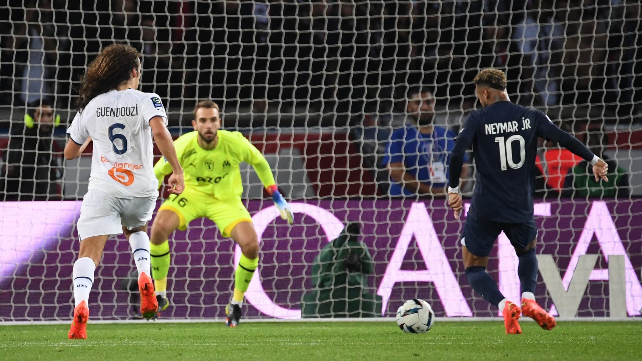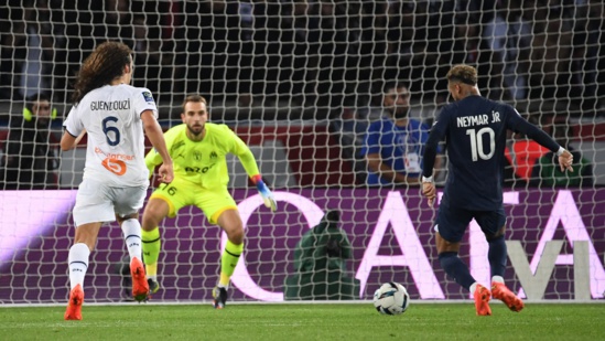 Le PSG a attendu la fin de la première période pour débloquer le score sur un but de Neymar, servi par Mbappé (1-0, 45e+2). Le club de la capitale française aurait pu prendre l'avantage plus tôt dans cette rencontre, mais les Parisiens ont longtemps buté sur un Lopez infranchissable dans son but. Après seulement cinq minutes de jeu, le gardien marseillais avait déjà stoppé deux tentatives de Messi et mis en échec Hakimi. Ensuite, l'Espagnol a encore brillé sur deux tirs de Mbappé et sa barre transversale a repoussé un coup franc de Messi.